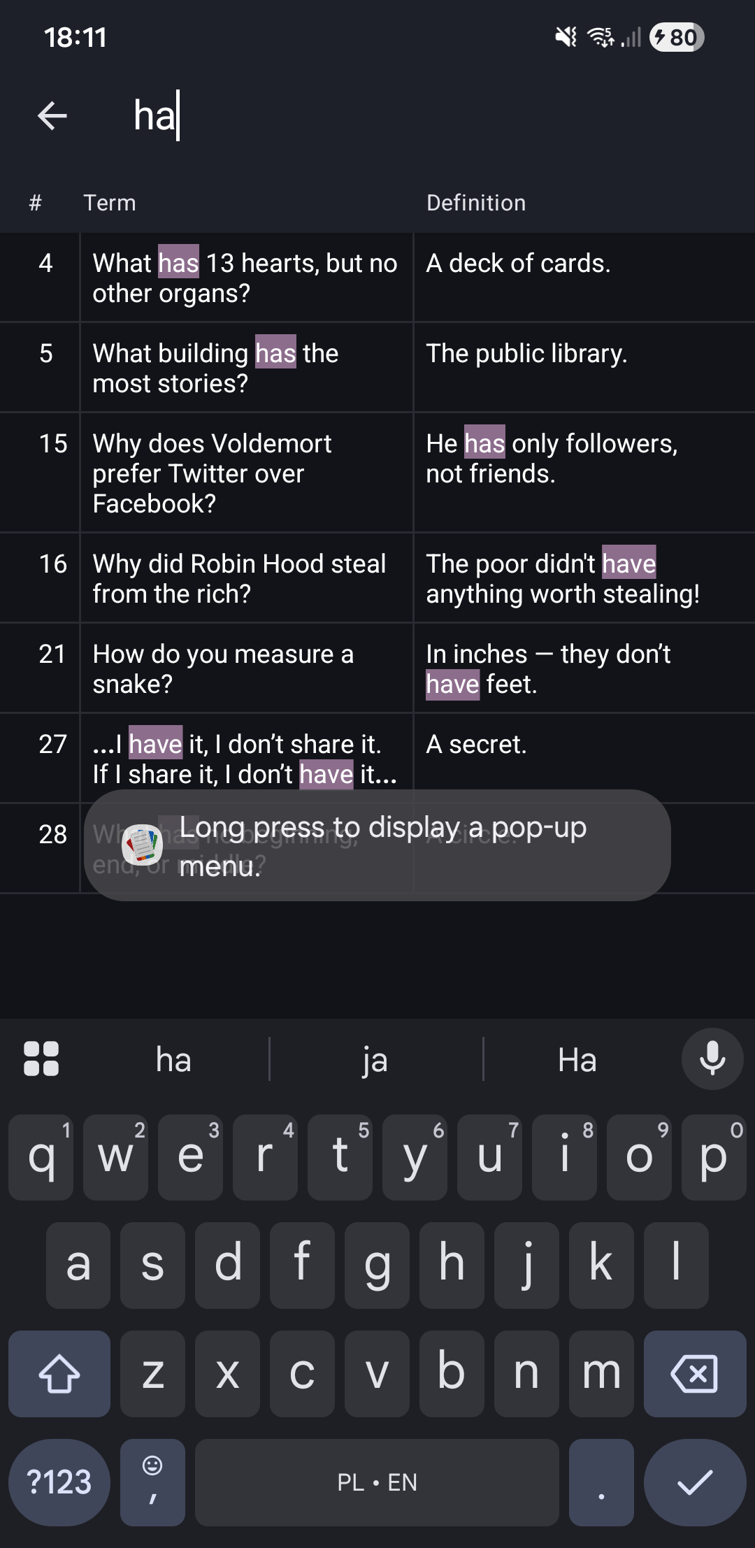 - Searches both term and definition